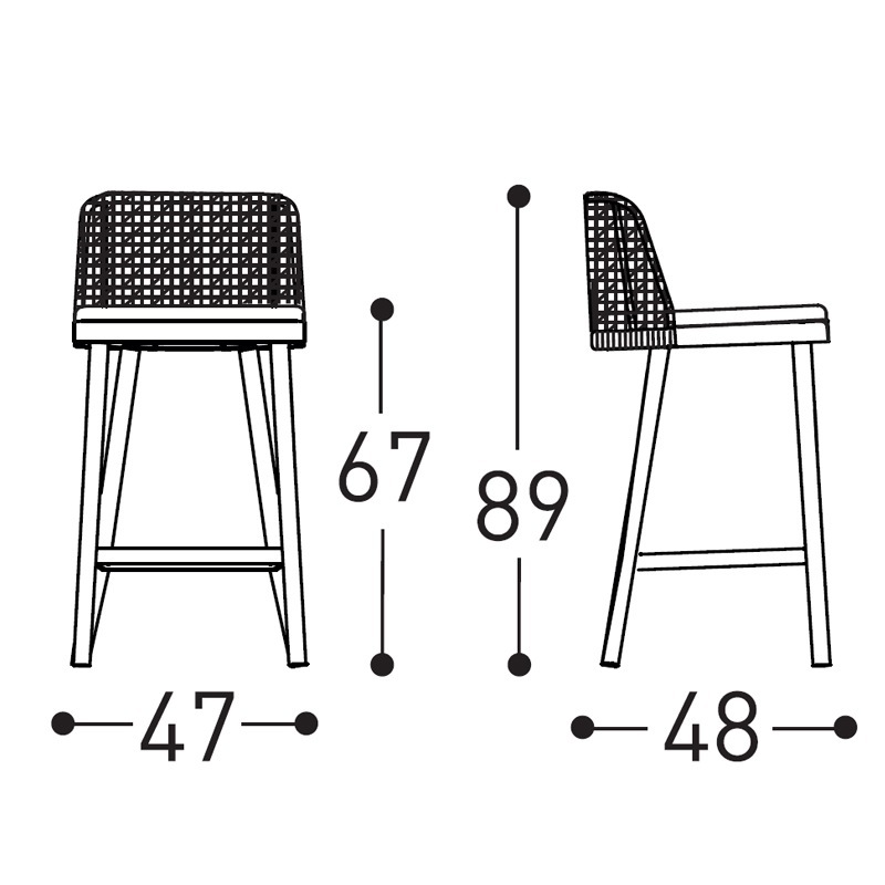 Varaschin EMMA LOW Barhocker, Rückenlehne mit Kordelgeflecht