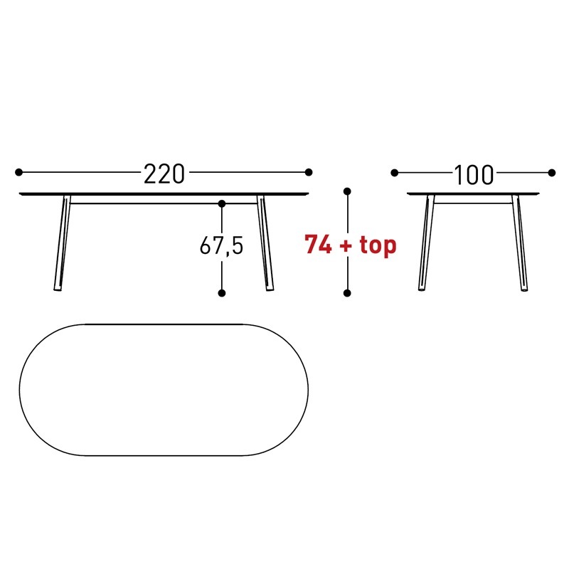 Höhe 74 cm + Tischplattenstärke